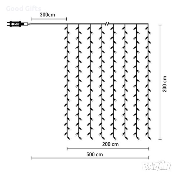 Коледни лампички Завеса, 360 LED, Топло бяло, Прозрачен кабел, С програми, снимка 1 - Лед осветление - 42734850 Коледни лампички Завеса, 360 LED, Топло бяло, Прозрачен кабел, С програми, снимка 2 - Лед осветление - 42734850 Коледни лампички Завеса, 360 LED, Топло бяло, Прозрачен кабел, С програми, снимка 3 - Лед осветление - 42734850 1/3
