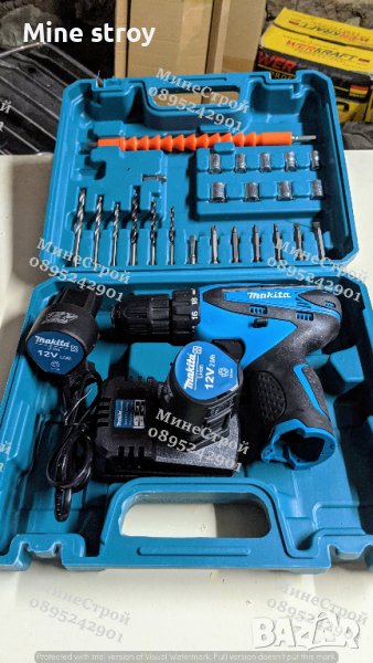 Акумулаторен Винтоверт Makita 12V 2Ah + 2 батерии и накрайници Макита