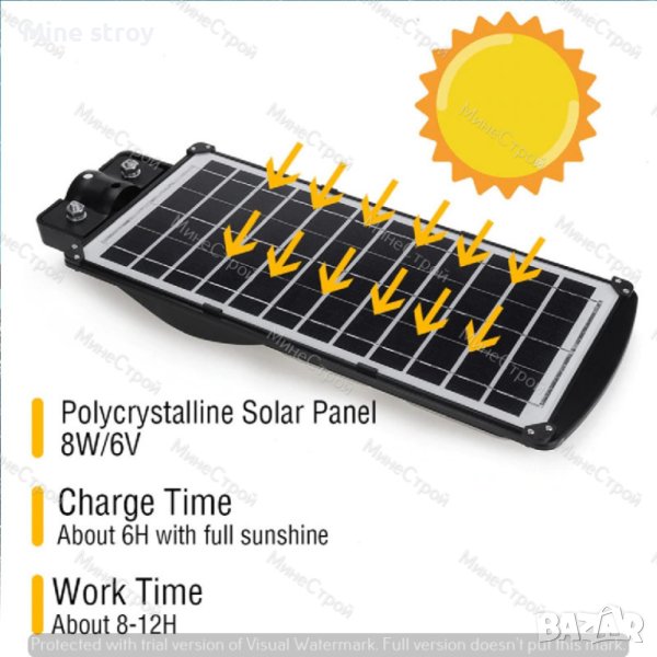 батерията отнема от 5 до 8 часа в зависимост от слънчевата светлина и