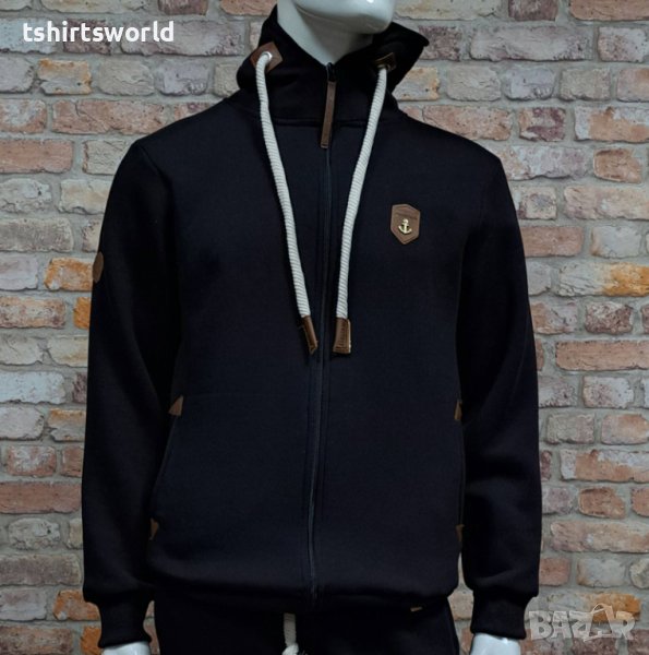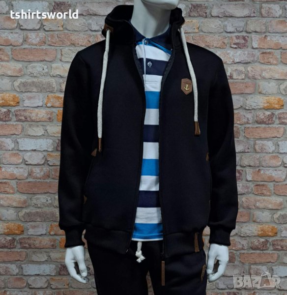 Нов мъжки топъл суичър с цип на марката НАКЕТАНО в черен цвят