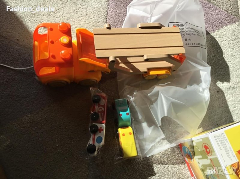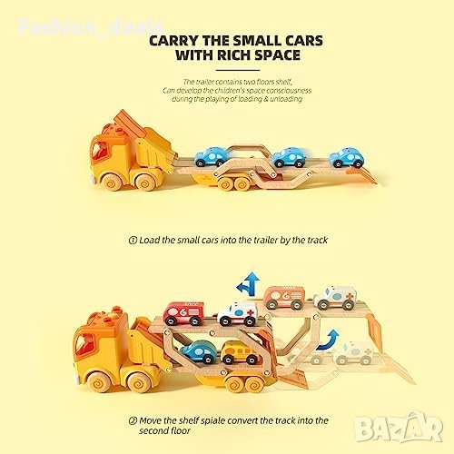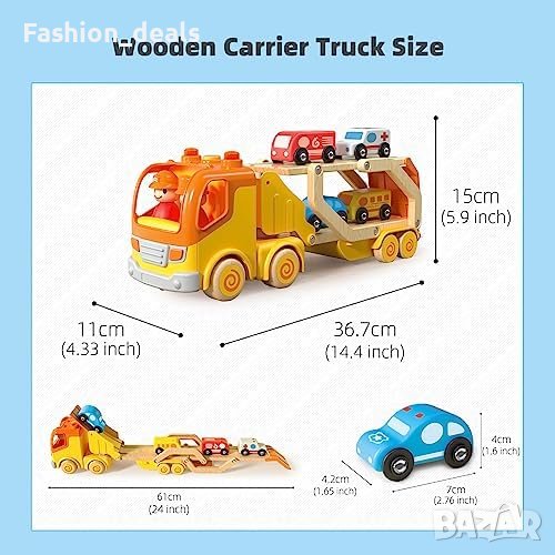 Нова играчка Транспортен Камион с 4 Дървени Коли: Светлини, Звуци, 2-5год.