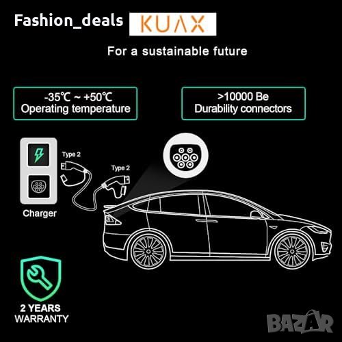 - KUAX EV зарядно за автомобил - Type 2 кабел за зареждане