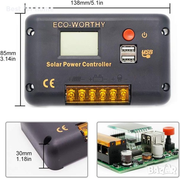 ECO-WORTHY 30A Контролер,Соларен панел