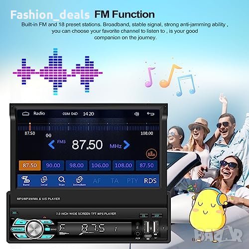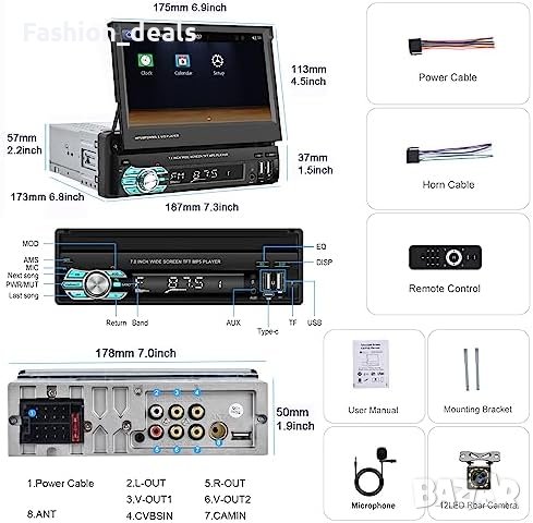 - Автомобилна стерео система с 7 инча сензорен екран (единичен DIN)