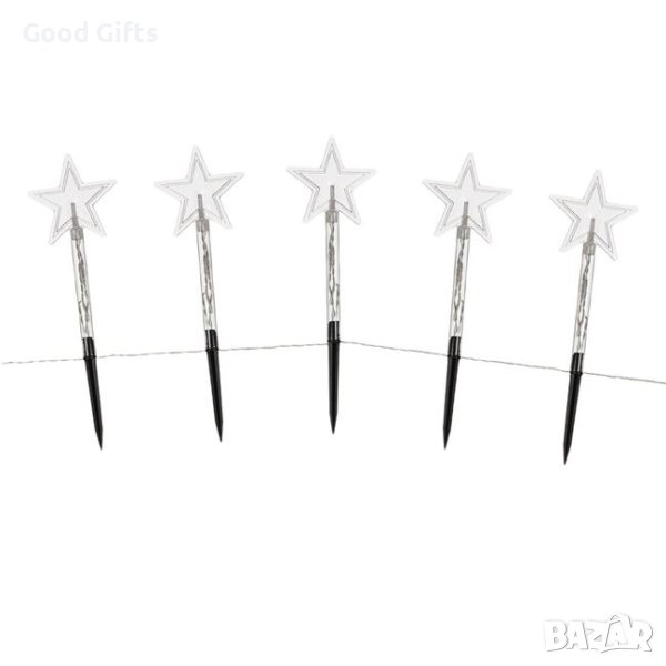 Поставят се на земята като соларни фенери, надземната част е 24см, а разстоянието между клечките е 35см. С функция таймер (6h On/18h Off). Работят с 3 AA батерии (не са включени).