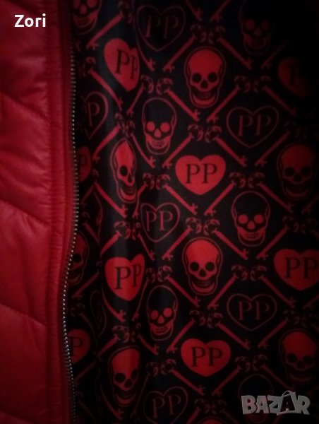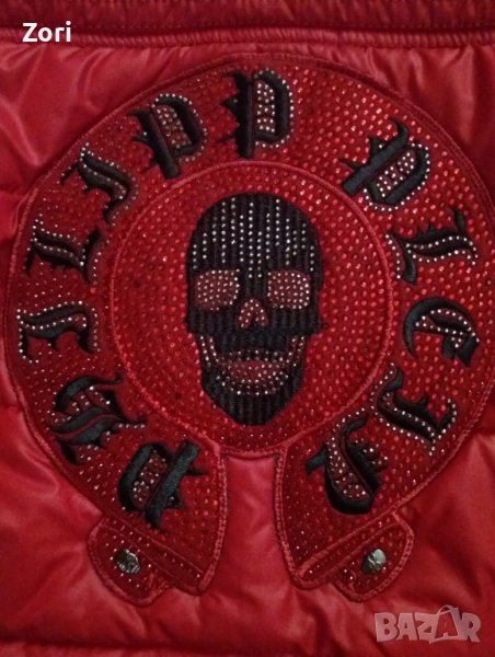 Якето се закопчава с цип, вталено е, има 2 джоба. Качулката е подвижна, с естествен косъм. Якето е украсено на ръкава и на гърба с черепи от камъчета.