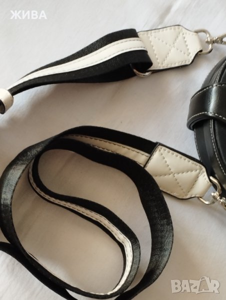 Малка дамска черна чанта през рамо, твърда, с една дълга дръжка /виж снимките/, с едно вътешно отделение, реплика на D &G, много ефектна, капачето е с магнитче.