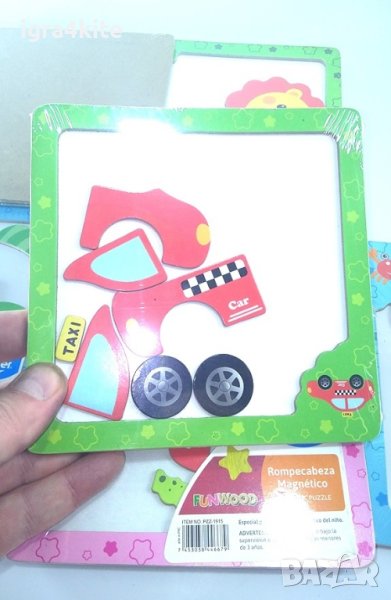 -68 бр. съставни магнити части от дърво за образуване на животни и превозни средства от които: