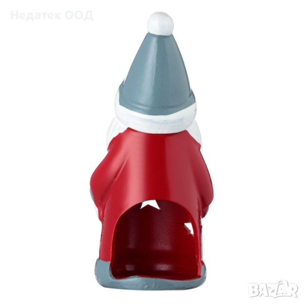 Коледен декоративен Дядо Коледа от керамика със сива шапка и бяла звезда на точки. Можете да поставите фитилна свещ.