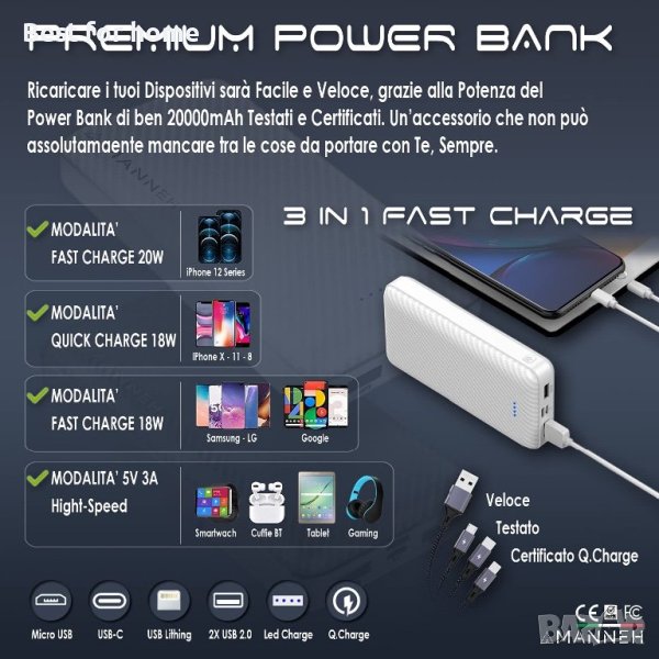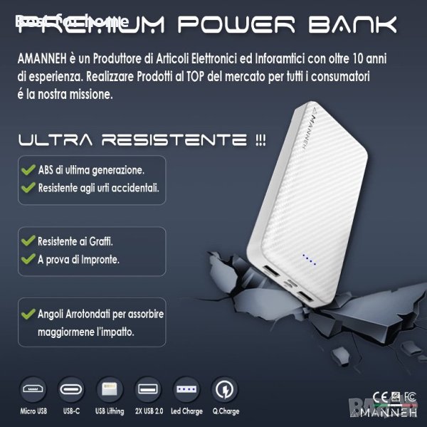 * Мощност: 20000mAh капацитет с висококачествена литиево-полимерна външна батерия предлага повече от 4,5 зареждания за iPhone XS и 4 зареждания за iPhone 11, близо 4 зареждания за Samsung Galaxy S10/S20, 2 зареждания за iPad Mini 5. Power Bank Amanneh е най-добрият начин за зареждане на аксесоари с ниска мощност като MacBook, таблети, мобилни телефони и има вградени устройства за сигурност, които ще предпазят вашето устройство от късо съединение или прегряване.