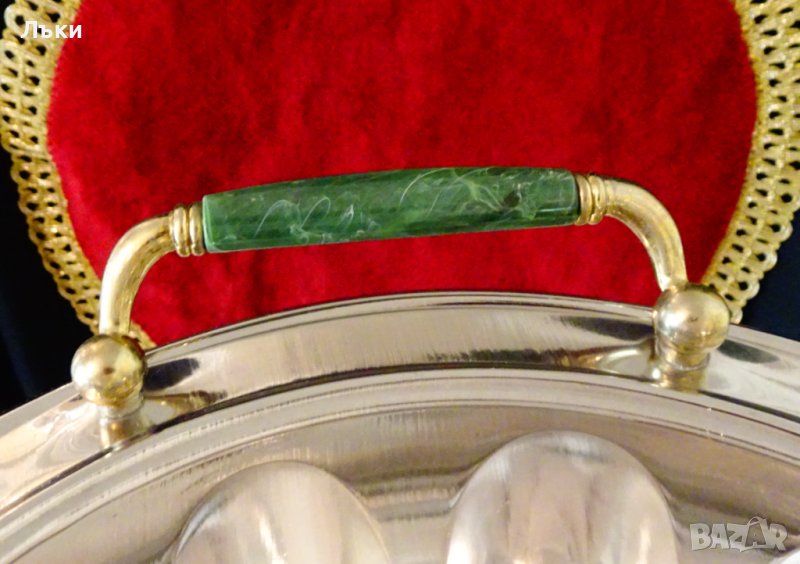 стабилни позлатени дръжки. Височина с дръжките 7 см.,височина на съда 4.5 см.,диаметър