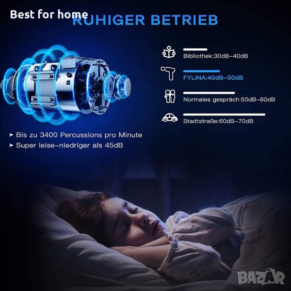 【Усъвършенствана ТЕХНОЛОГИЯ ЗА НАМАЛЯВАНЕ НА ШУМА】: Професионален масажор за дълбоки тъкани използва технология за намаляване на шума, която осигурява висока производителност и нисък шум. Изключително тих при масаж; под 50 dB са тясно свързани чрез високо прецизната форма на главата на машината и тялото, а шумът по време на работа може да бъде ефективно намален чрез леко плъзгане. Насладете се на времето за масаж лесно и удобно.