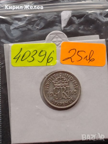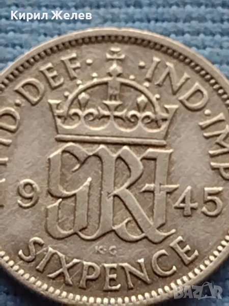 Сребърна монета 0.500 проба 6 пенса 1945г. Великобритания крал Джордж шести 40396 → Обява 42752451