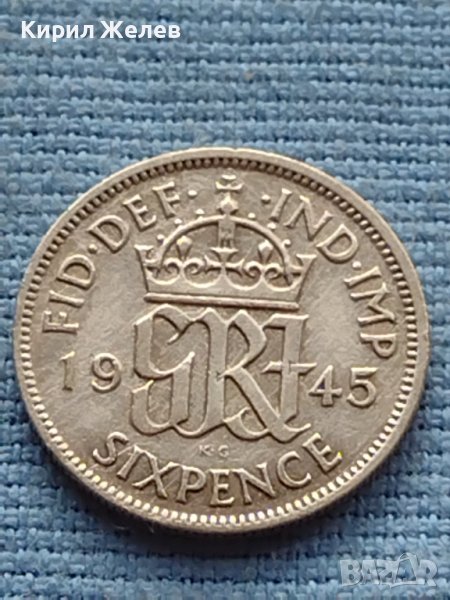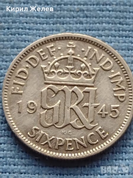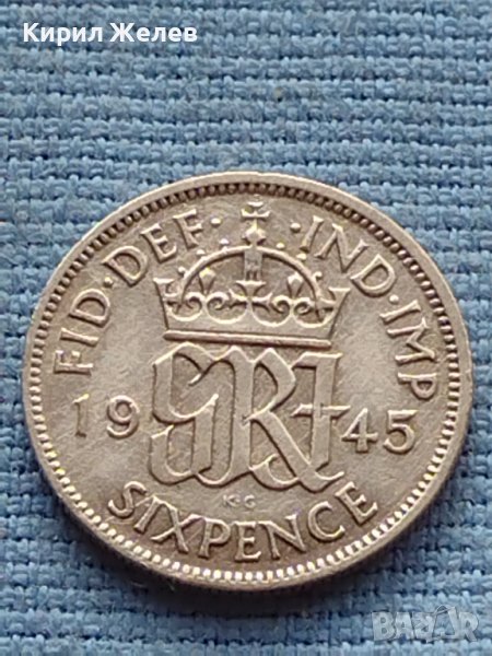 Сребърна монета 0.500 проба 6 пенса 1945г. Великобритания крал Джордж шести 40396