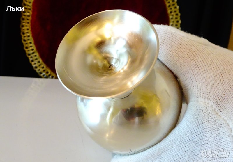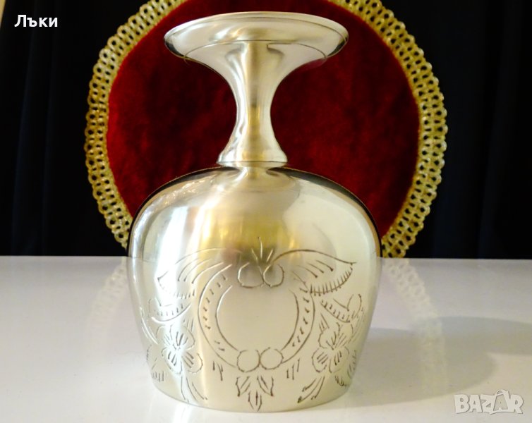 красива,блестяща с празничен звън.Височина 9.5 см.,диаметър 8 см.,тегло 140 гр.Вместимост
