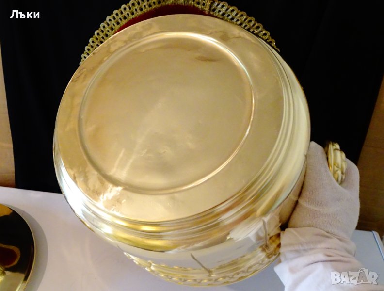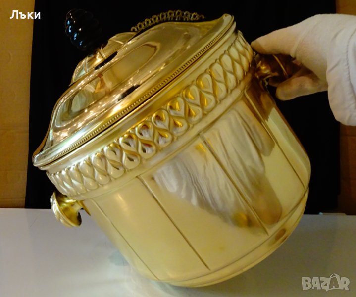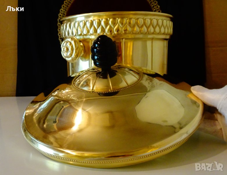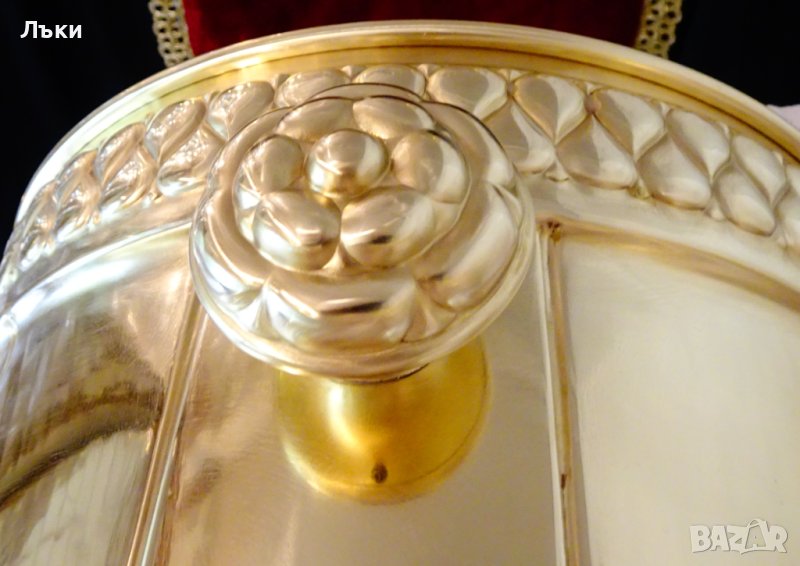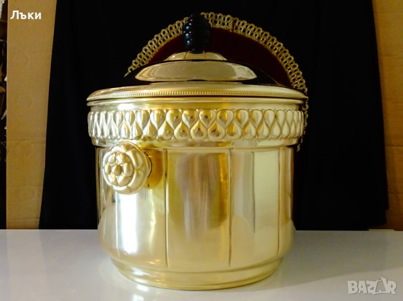 качествен златен месинг, кована с разкошен релеф в стил Art Nouveau.Капака
