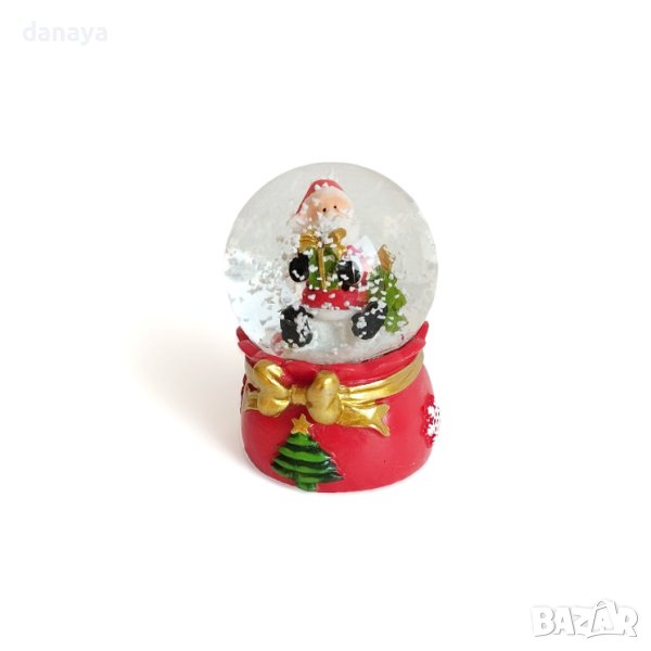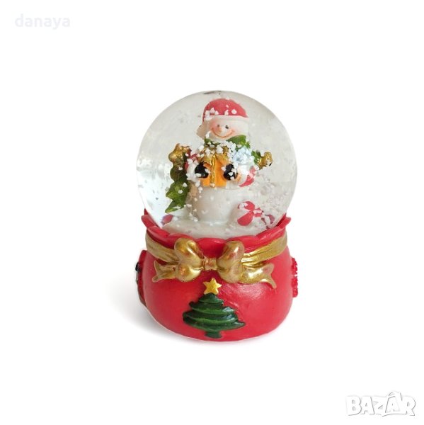 Коледна снежна топка. Коледно преспапие декорирано с панделка и елхичка. Вътре в стъклената топка се показват фигура на Дядо Коледа или Снежко. Ако размърдаш топката, вътре в нея ще завали сняг 🙂
