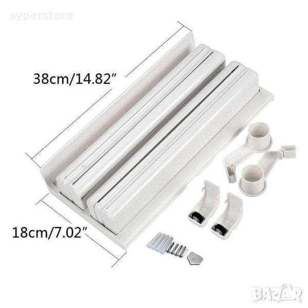 Опаковайте храната светкавично, в 3 лесни стъпки: издърпайте, опаковайте и отрежете. Трябва да притежавате този аксесоар във Вашия дом. Поставете всяка ролка в гнездата с пружини. Антиплъзгащи гумени крака захващат повърхностите. Безопасно скрито острие, което гладко отрязва алуминиево фолио, восъчна хартия, пластмасова обвивка, тъкани и др.