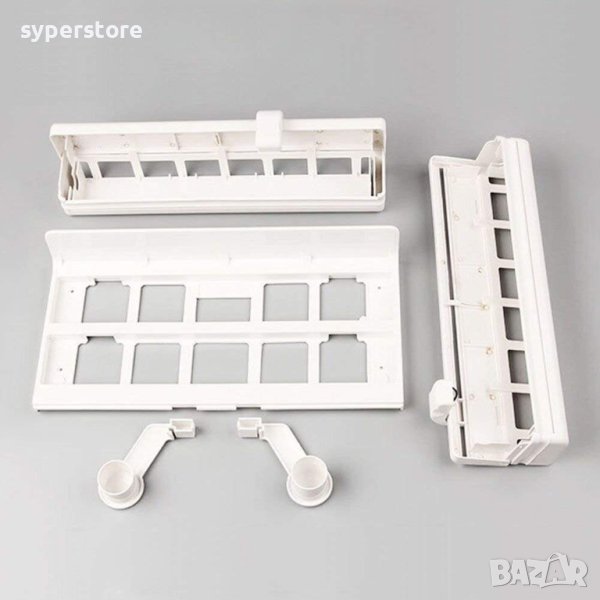 Поставката има три гнезда - едно за фолио, едно за стреч и едно за кухненската хартия.