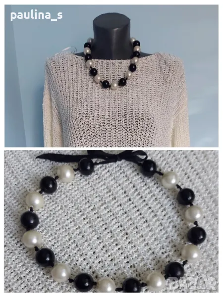 2️⃣. Колаж / L / 2XL - Луксозен кроп пуловер "dilVin" knit. Цената е крайна 29,99лв / 15 евро. Луксозен кроп пуловер със сатенена нишка, нов. Цветът се мени от светлината до шампанско. Нов е, една бройка, без дефекти, става за посочените размери. Колието се продава също - цена 9,99лв / 5 евро.