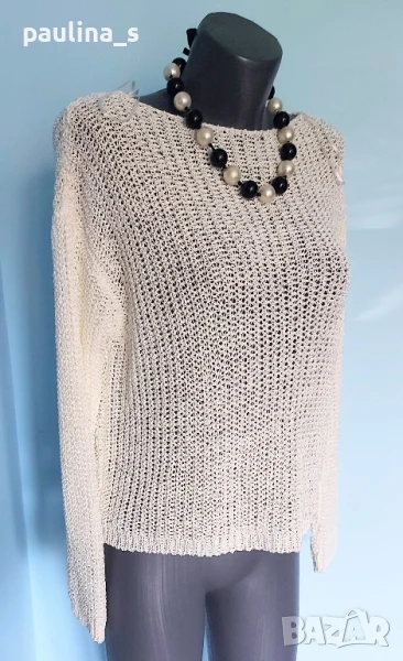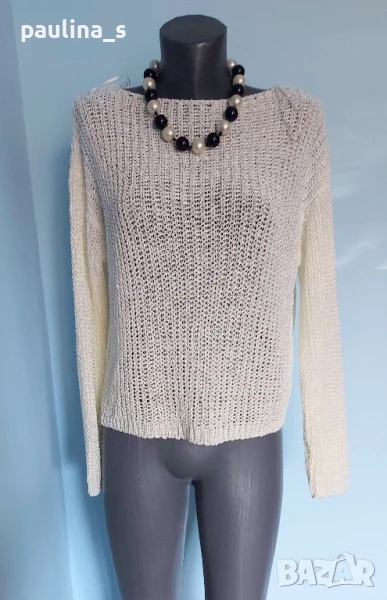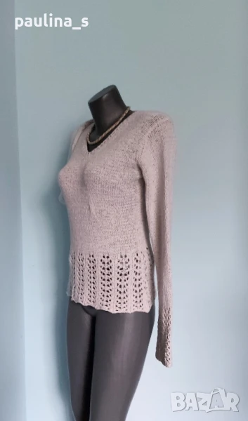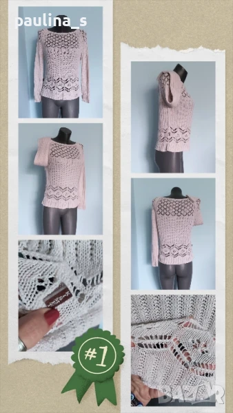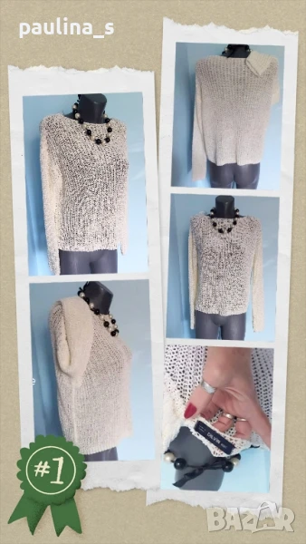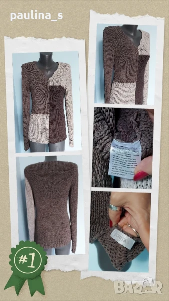 3️⃣. Колаж / M / 2XL - "Kismet". Цената е крайна 19,99лв / 10 евро. Като нов. Изключително красив пуловер, плетката е много оригинална. Моделът се вижда добре, с реглан ръкав, кокетно деколте и леко втален силует. Преждата съдържа вискозна коприна - тежка и много приятна за носене на голо, а плетивото дава възможност да се носи от няколко размера, не е нов, но е без дефекти.
