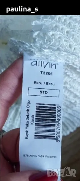 1️⃣ . Колаж / XL / 3XL - "Bonita". Цената е крайна 29,99лв / 15 евро. Сладурски пуловер с асиметрична декорация, интересно деколте, неутрален десен, подходящ за всичко. Преждата е от копринен шнур със съдържание на полиамид и полиакрил, приятна за допир и дава възможност да се носи от няколко размера. Една бройка е, без дефекти, като нов.
