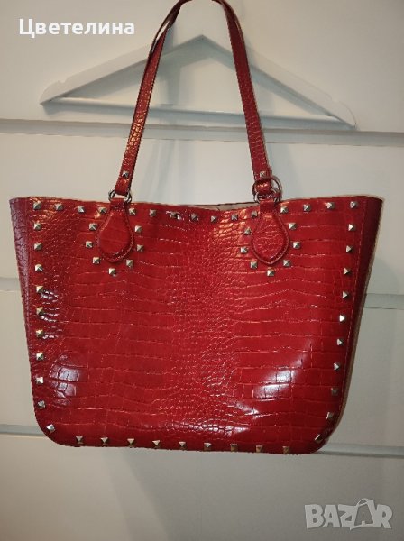 Дамска червена щампована пазарска чанта ZARA цена 39,99 лв. + подарък балсам за устни