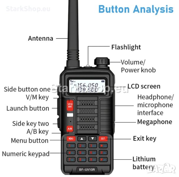 - Честотен диапазон: VHF: 136 – 174MHz; UHF 400 – 520MHz