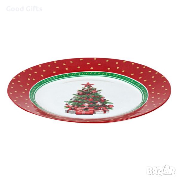 Кръгла коледна порцеланова чиния, Коледна елха и подаръци, 26.5см