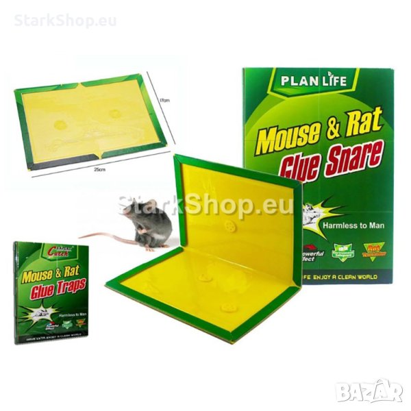 Лепкав капан за мишки, насекоми, плъхове и др. е на принципа на залепването, щом мишката стъпи на него тя залепва. Сложете парче сирене или кашкавал, което да привлече мишката в капана. Този лепкав капан за мишки е подходящ за дом с малки деца, защото не съдържа вредни вещества и отрови.