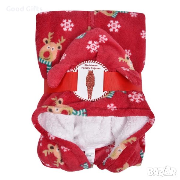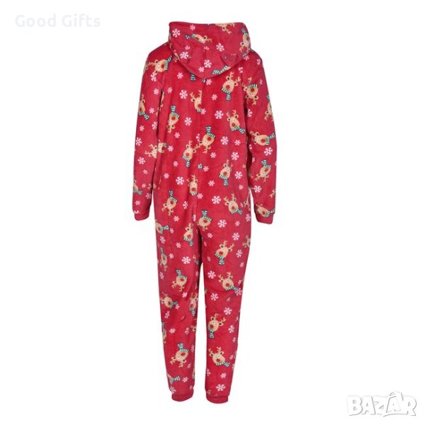 Коледен гащеризон с шарка на елени и снежинки с качулка