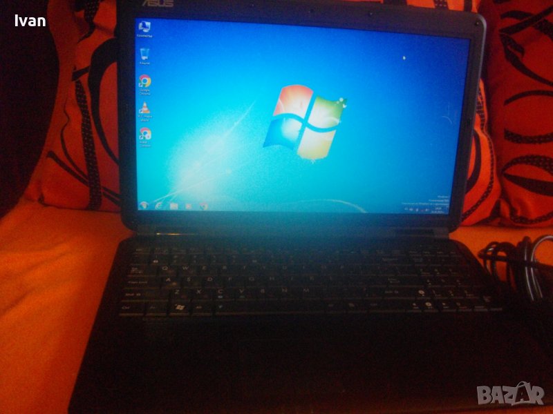 15,6 инчов лаптоп на Асус, с инсталиран Уйндолс и работещ без забележки, с батерия издържаща около 1 час и със зарядно.