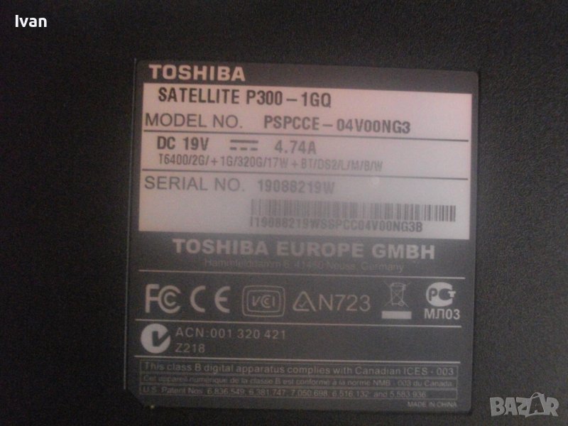 Марка и модел Toshiba Satellite P300 - 16 Q