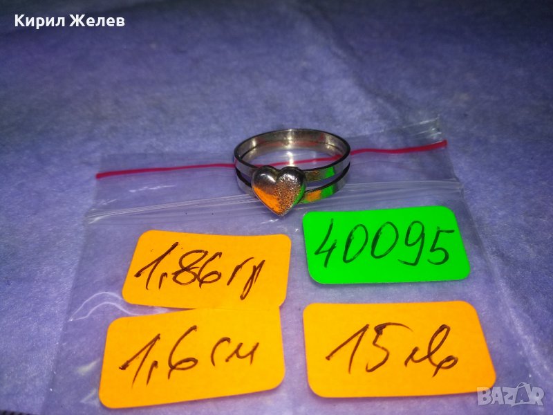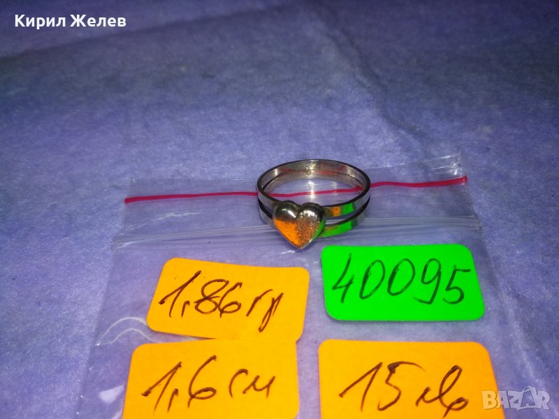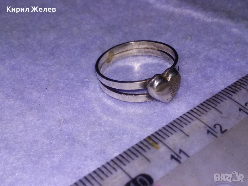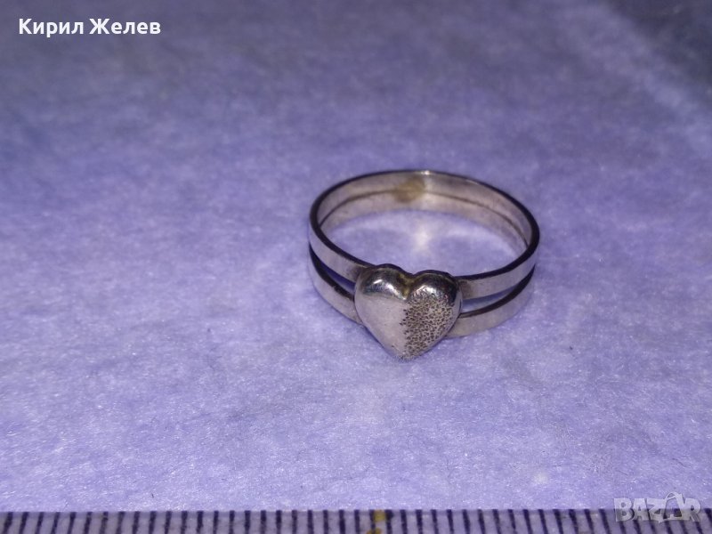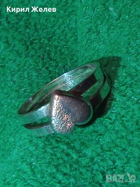 ИЗЯЩЕН СЪРЦЕВИДЕН РОМАНТИЧЕН МАЙСТОРСКИ СРЕБЪРЕН ПРЪСТЕН ВИСОКА ПРОБА СРЕБРО с БЯЛА ПОЗЛАТА 40095