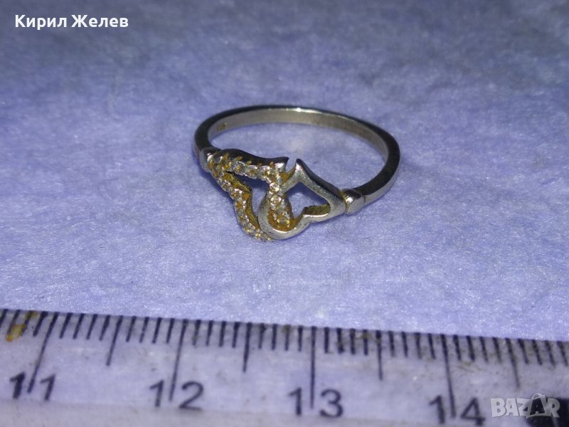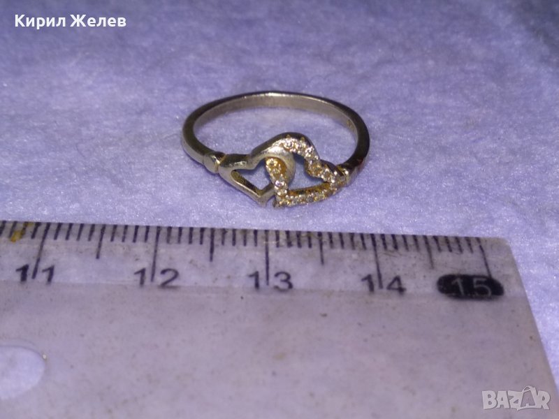 Две СЪРЦА в ЕДНО СКЪПОЦЕНЕН СРЕБЪРЕН ПРЪСТЕН СРЕБРО 925 с ИСКРЯЩИ ЦИРКОНИ