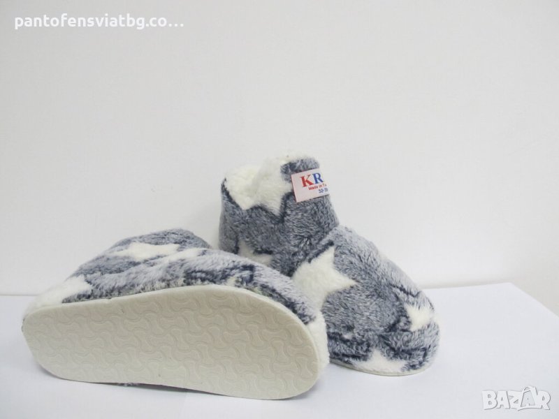 Дамски пухени пантофки тип ботушки в красив десен на звезди.