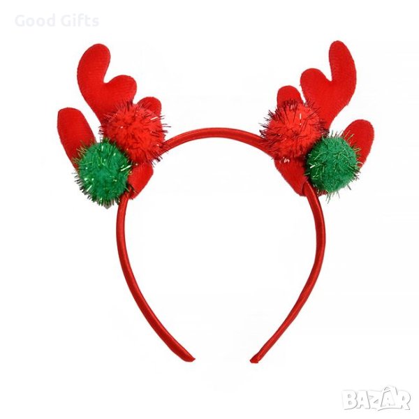 Туту пола с червен тюл и зелена дантела и диадема за коса с червени еленски рога (6x9 см) и зелени/червени помпони