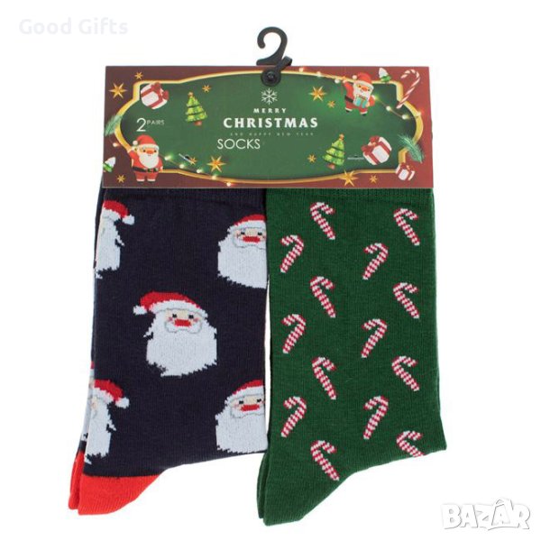 2 чифта Мъжки Коледни чорапи с Дядо Коледа Candy, 41-46н