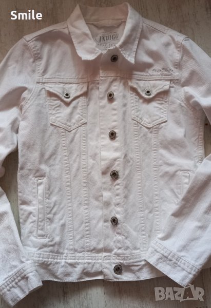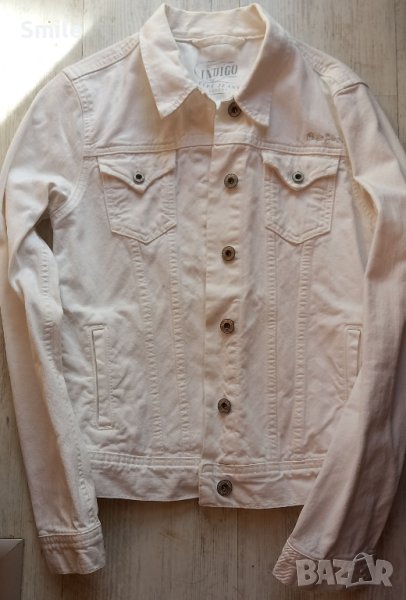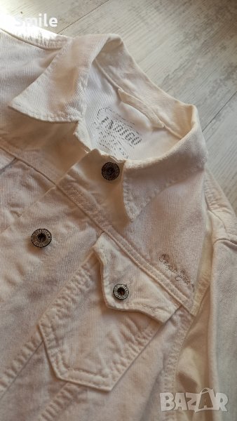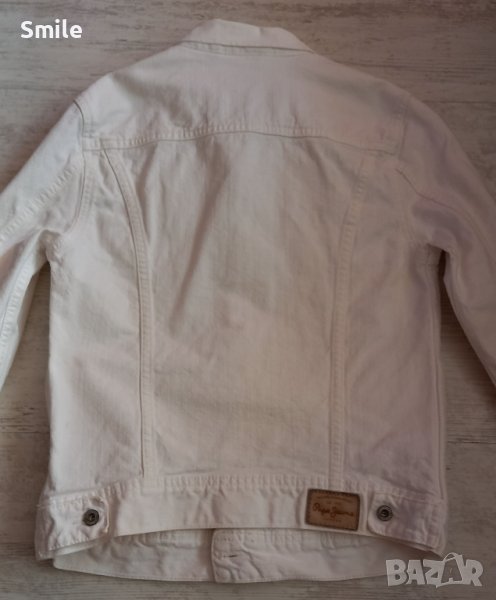 Дамско дънково яке Pepe Jeans London. Якето е като ново. В отлично състояние, отлично качество, без никакви забележки. Цветът е снежно бял. Стои страхотно Размер S. Размери, измерени от мен: ширина от подмишниците в закопчан вид - 41 см., ширина долу - 40 см., дължина - 55 см., дължина на ръкав + рамо - 69 см., дължина на ръкав от мишница - 44 см. Изпращам със "Спиди" или с "Еконт".