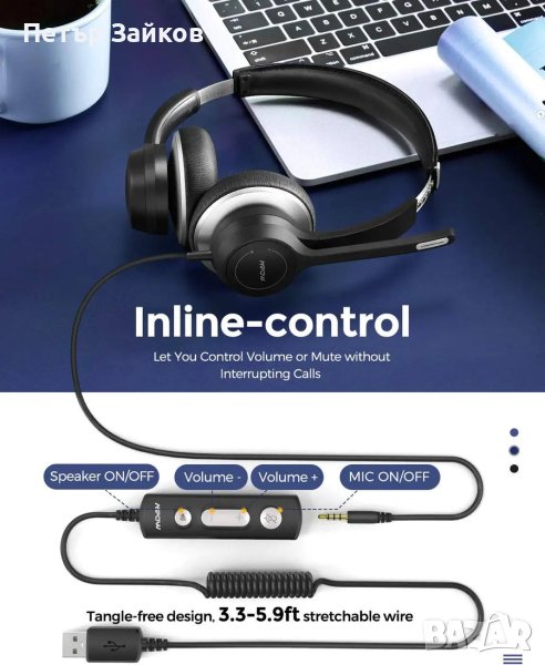 ЦЯЛОТО СЪВМЕСТИМОСТ: USB и 3,5 mm опции за свързване ви позволяват да работите на различни устройства. Съвместим с Windows 2000/7/8/10/XP/Vista, Mac OS X, iOS, Android, Tablet PC. Забележка: Моля, изберете USB връзка, ако искате да заглушите функцията.