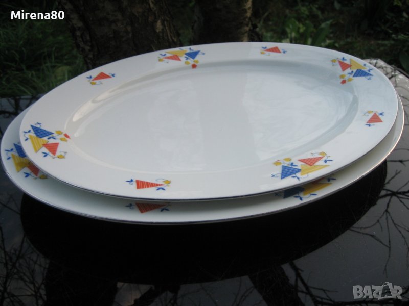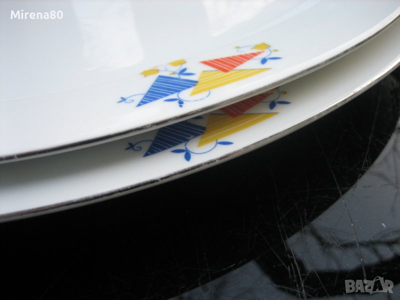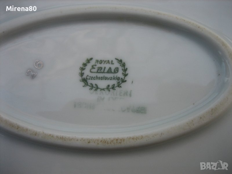 2 великолепни "дядковци" от Чехословакия в завидно порцеланово за годините си здраве. Маркировката е много рядка - от годините на немската окупация по време на ВСВ (1939-1945). Под логото Епиаг има надпис "декорирано в Чехословакия" на немски език. Декорът е в типичен за фабриката стил, със сребрист кант, на места леко поизбледнял. Без чук, пук и т.н. Разликата в размера е минимална.