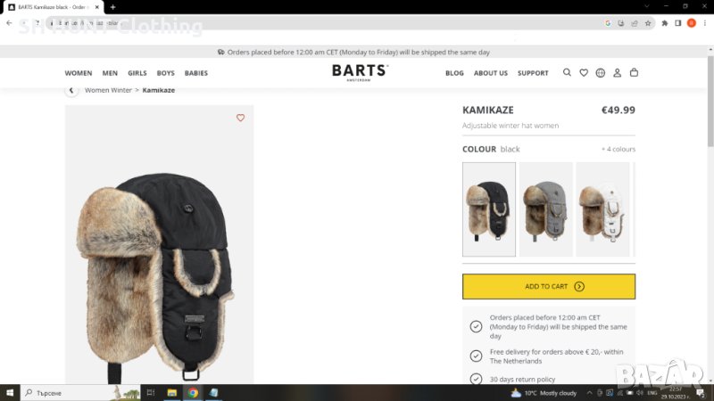 Марка: BARTS 0126 Winter Hat - зимен калпак L191-6 Размер: L - 58 , 59 , 60 см обиколка на главата.