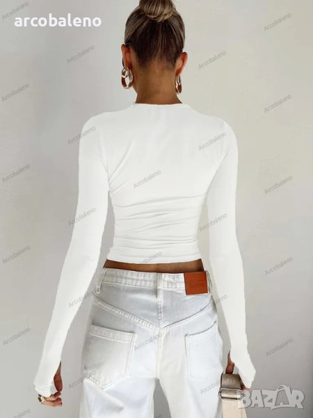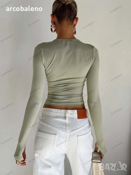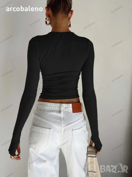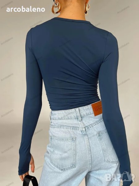 Дамска едноцветна Hot Girl Slim Fit тениска с кръгло деколте и дълъг ръкав, 8цвята