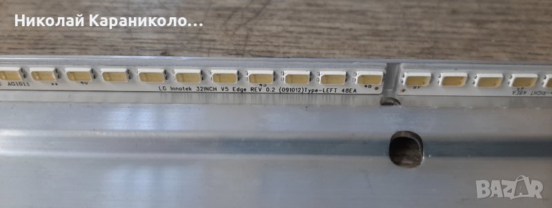 Лед ленти - 3660L-0346A/LG Innotek 32inch v5 Edge rev 0.2 Tipe-LEFT 48EA и LG Innotek 32inch v5 Edge rev 0.2 Tipe-RICH 48EA/ със алуминиев радиатор - 2 бр.на радиатор,2 бр.радиатори-1бр.продаден - цена 10 евро.