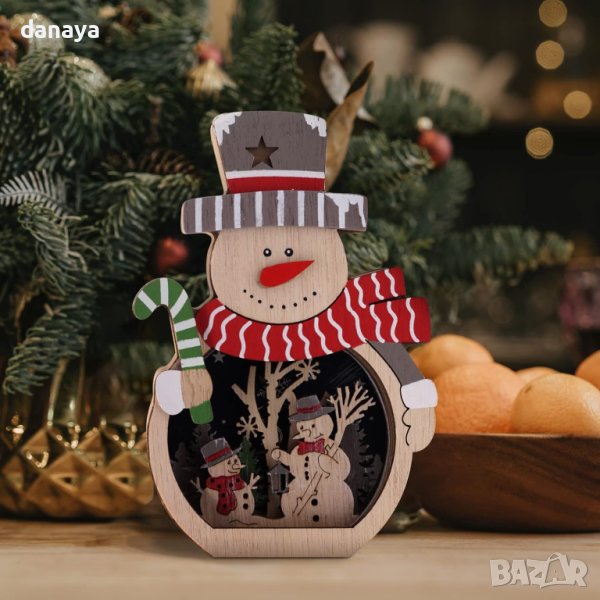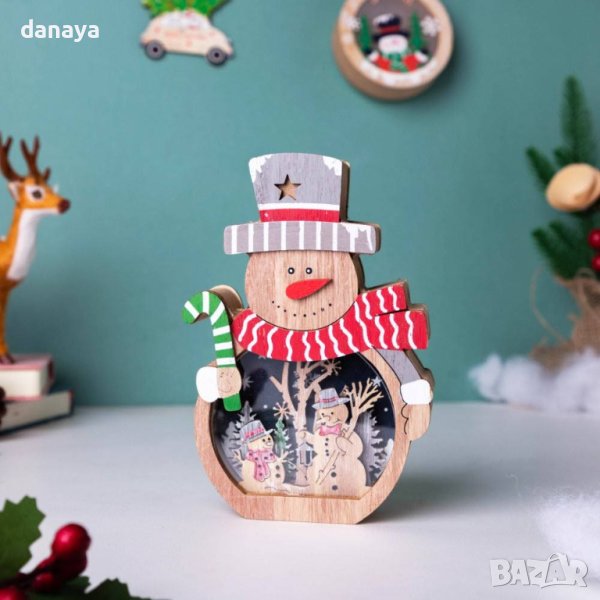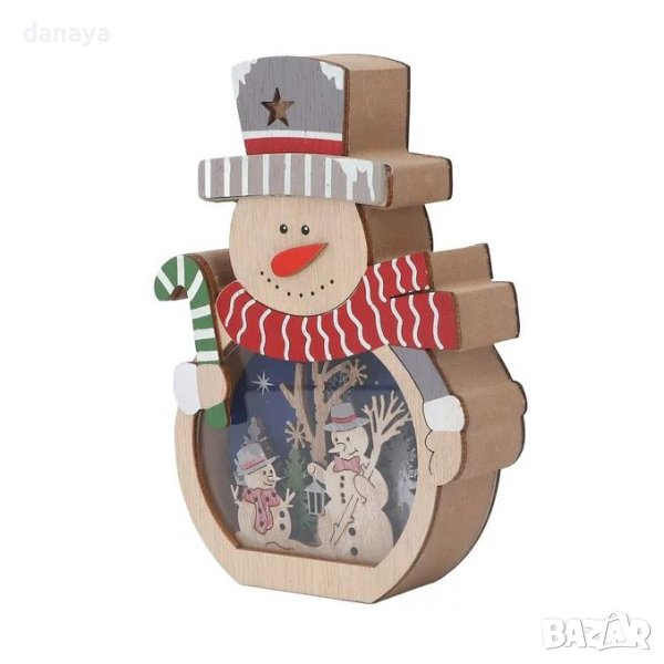 4131 Дървена светеща коледна фигура Снежко, 16см
