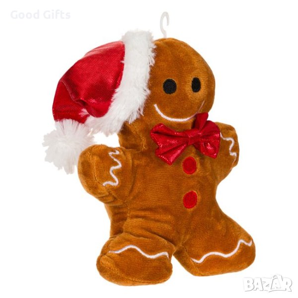 Коледно мини плюшено бисквитено човече с червена лъскава папийонка и шапка с бял помпон.