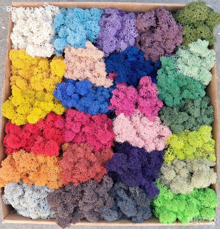 - Мъхът не е почистен, има иглички в него и някои цветове имат оцветяване в долната част на стръкчето (обикновено при цветове като бял, розов, жълт..)