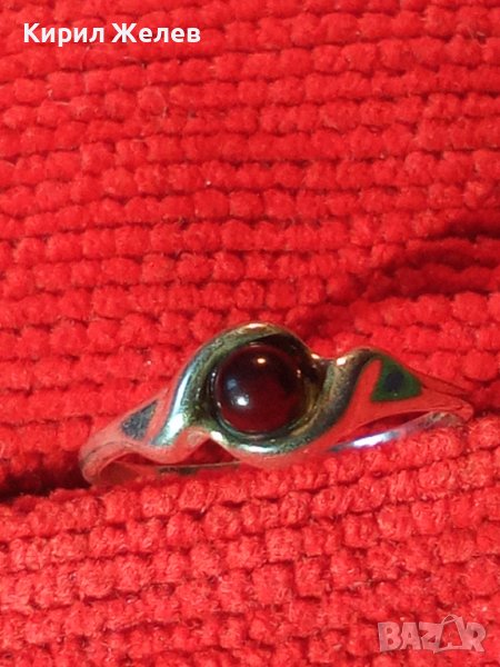 РУБИНЕН СРЕБЪРЕН ПРЪСТЕН СРЕБРО 925 АНГЛИЯ ЮВЕЛИРНА МАЙСТОРСКА СТАРА РЪЧНА РЕТРО ИЗРАБОТКА 40536