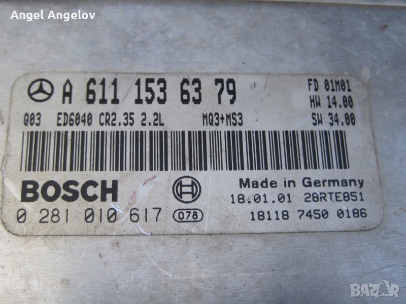 Компютър запалване ECU A6111536379 BOSCH 0281010617 ​за Mercedes Sprinter 2.2 220 CDI , снимка 1 - Части - 42789179 Компютър запалване ECU A6111536379 BOSCH 0281010617 ​за Mercedes Sprinter 2.2 220 CDI , снимка 2 - Части - 42789179 1/2