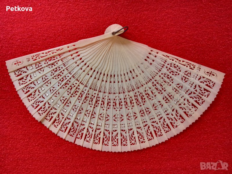 Продавам огромно камбоджанско ветрило с радиус 61 см от бамбук и щампиран текстил за 200 лв.(102.26 евро), както и антикварно ветрило от слонова кост, 47 г, за 480 лв.(245.42 евро).